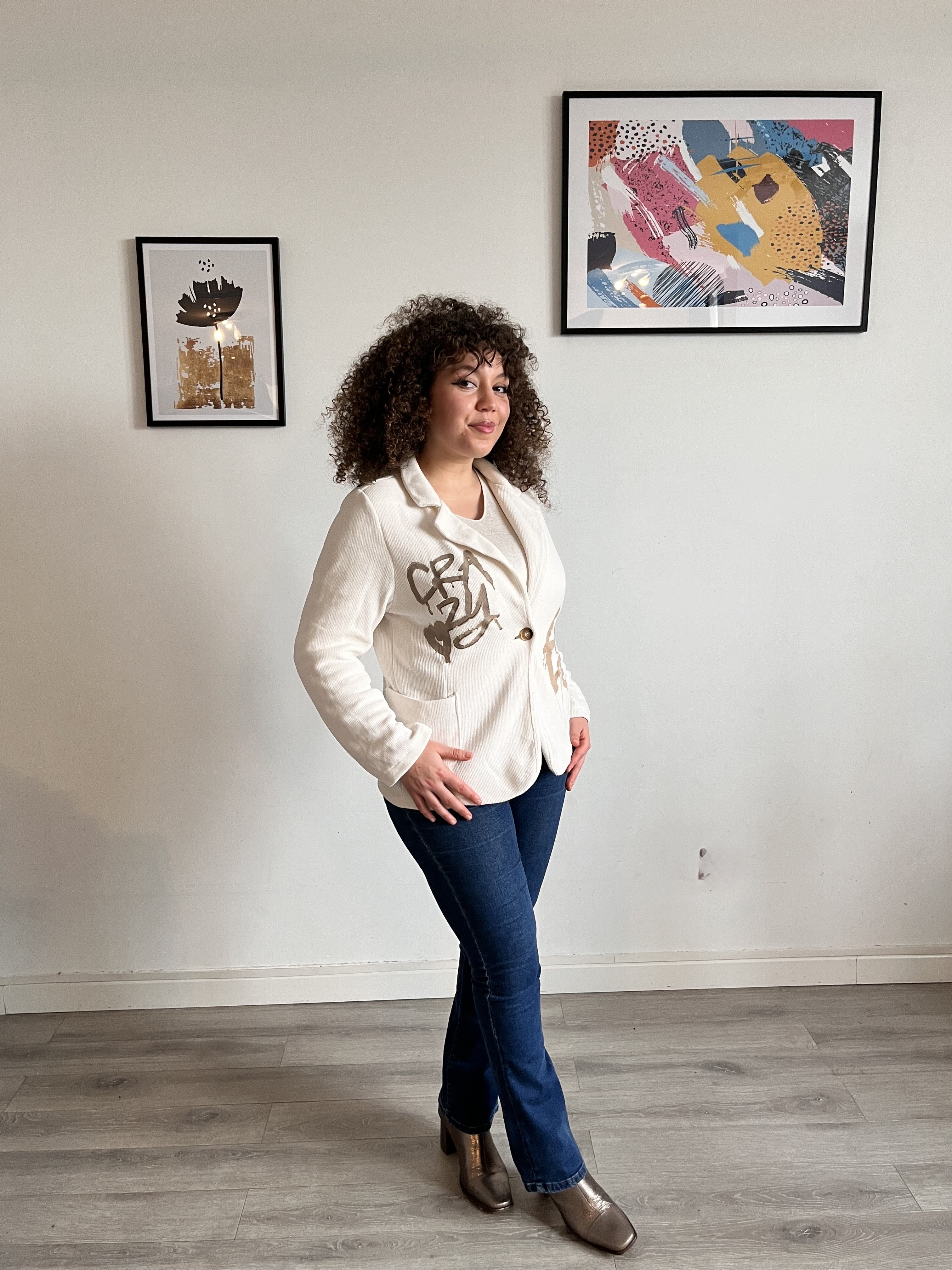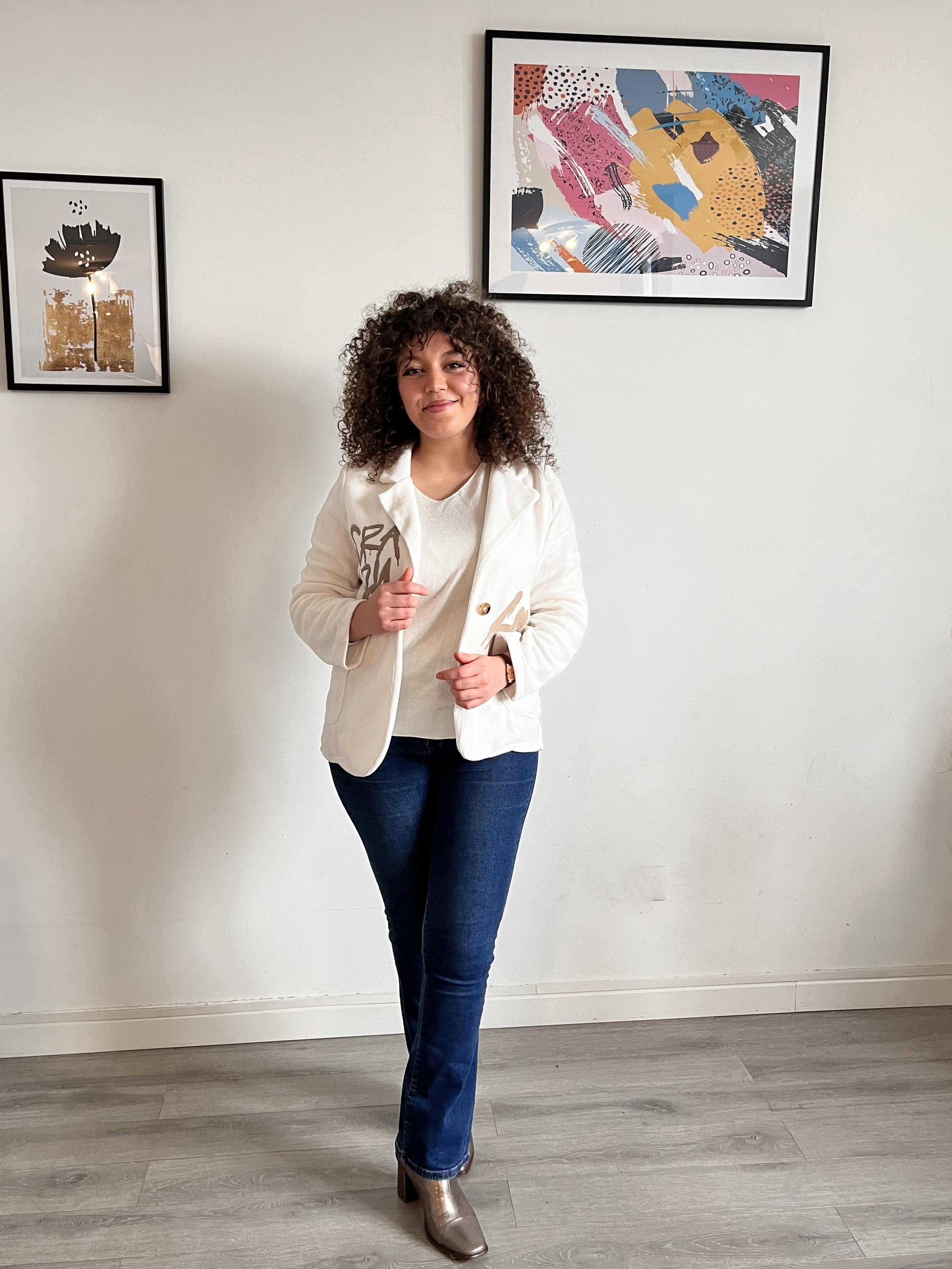 Vous pouvez fermer la veste avec un bouton pour un look plus structuré.