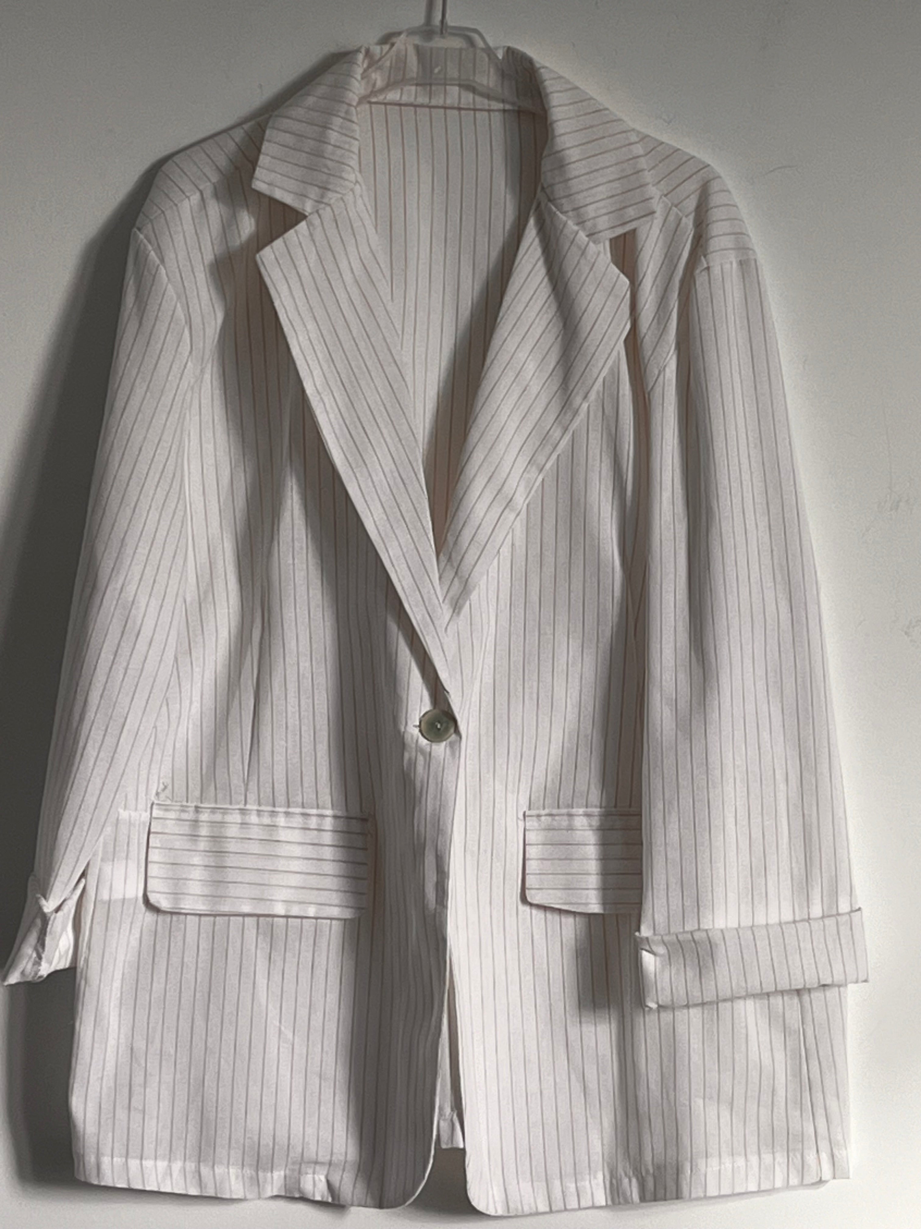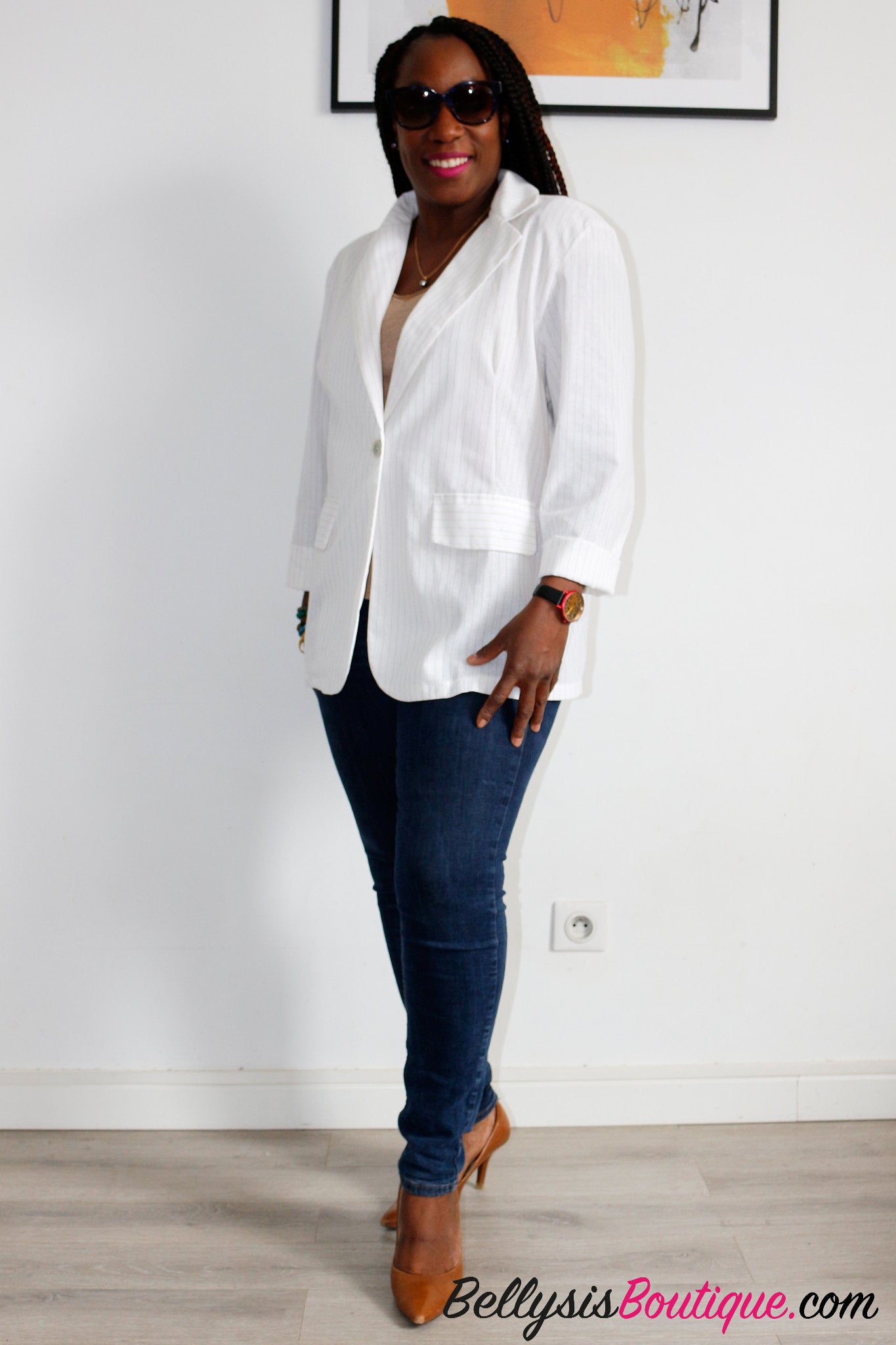 La veste LAURA en blanc cassé et marron est l'accessoire parfait pour ajouter de l'élégance à votre tenue.