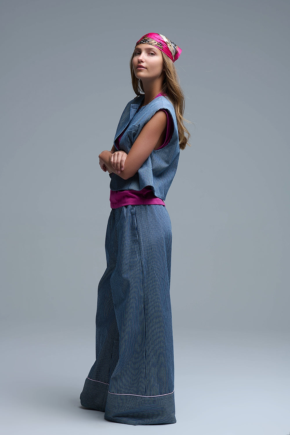 Créez l’ensemble avec le "Pantalon palazzo rayé à jambe extra-large" disponible en boutique