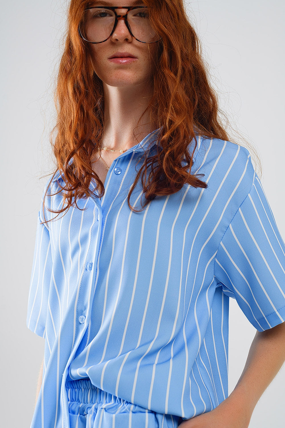 La chemise à manches courtes rayée bleue est un choix judicieux pour votre garde-robe estivale.