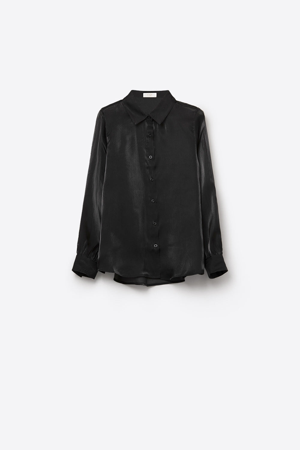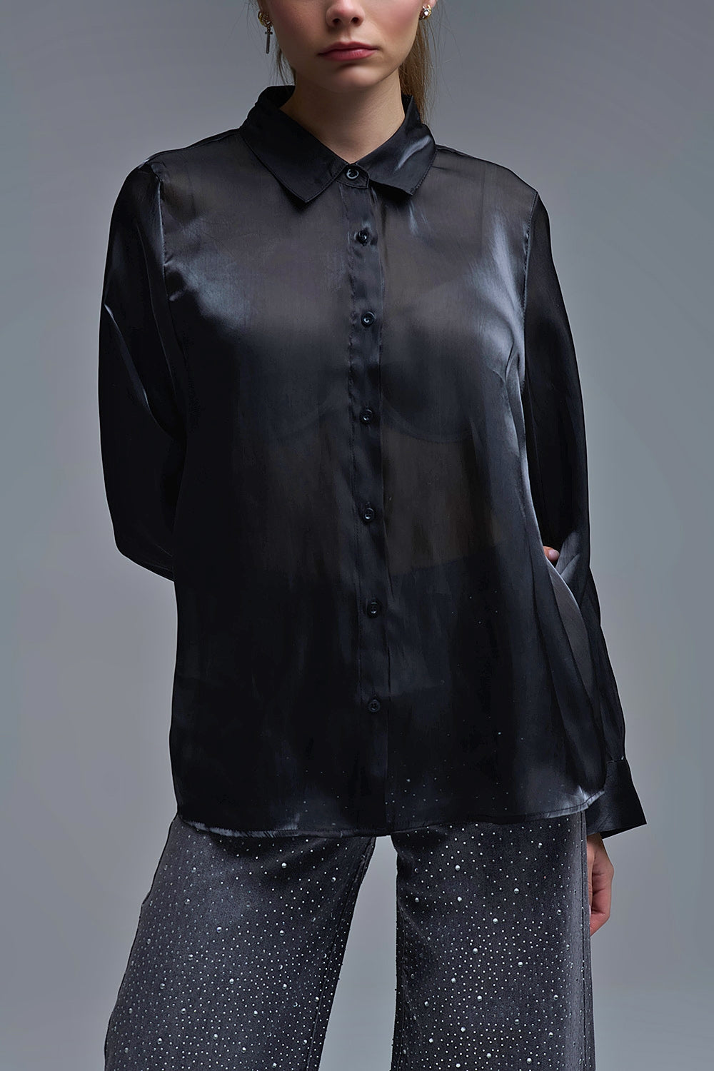 Améliorez votre garde-robe avec cette exquise chemise en satin de soie noire conçue à la fois pour le style et le confort.