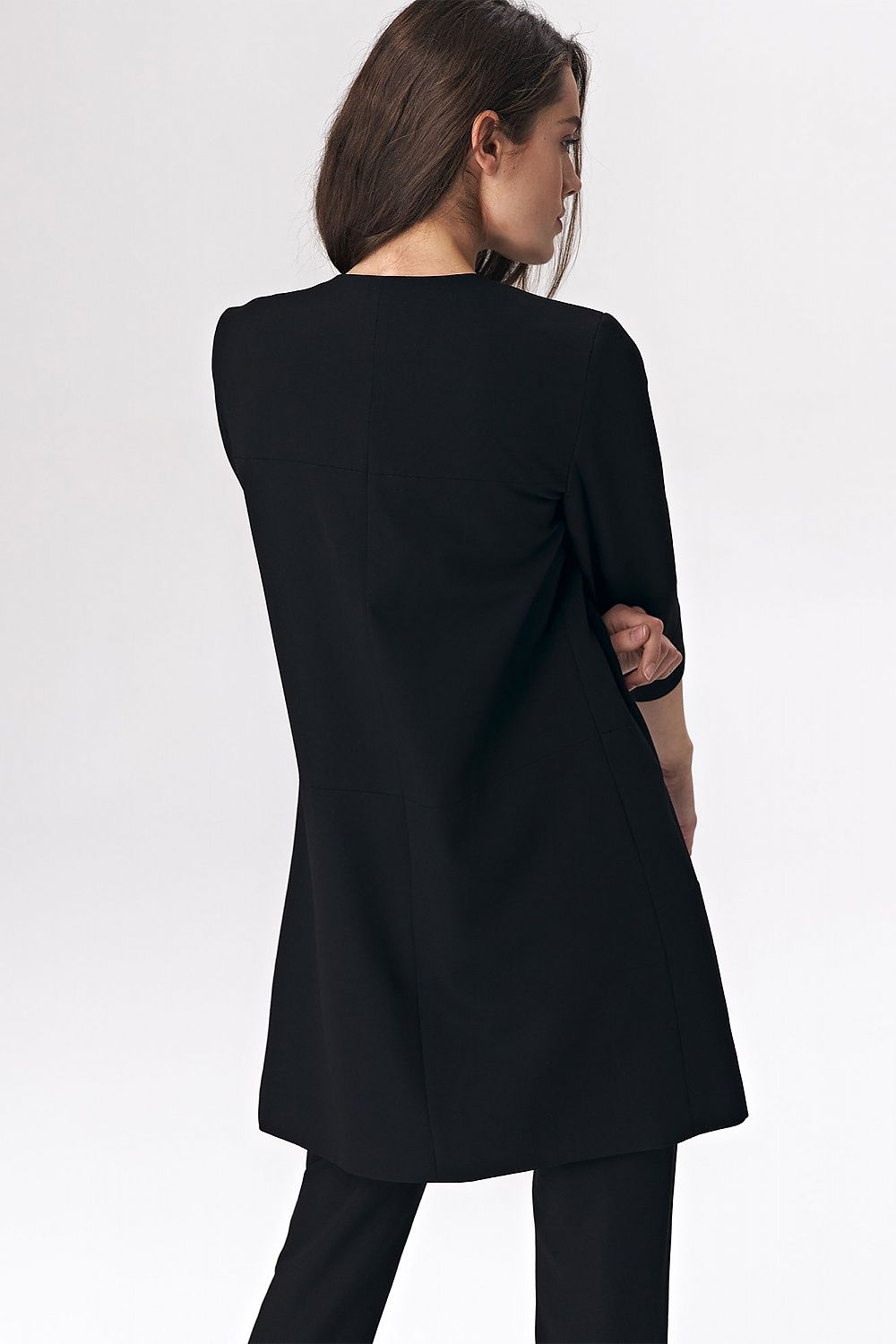 La veste longue noire pour femme est un excellent complément au style soft-office.