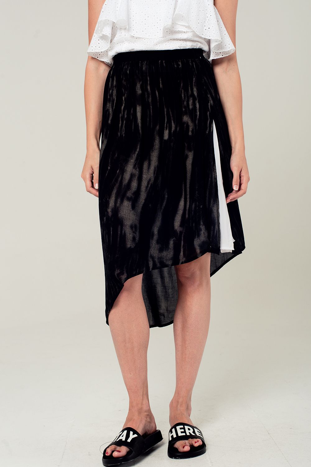 Cette jupe noire ondulée avec des détails gris est conçue pour offrir à la fois style et confort.
