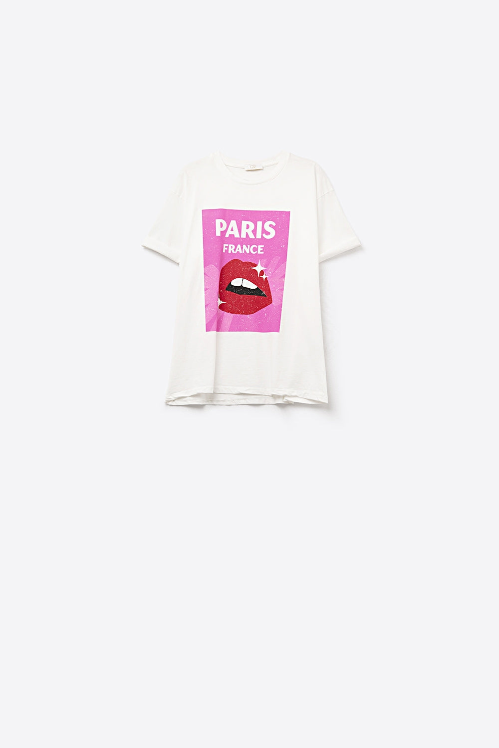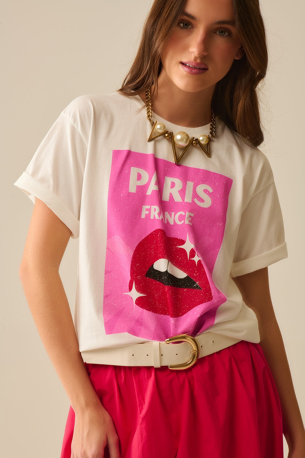 Les lèvres rouges frappantes complètent le design faisant de ce tee-shirt un choix idéal pour les sorties décontractées ou les rassemblements branchés.