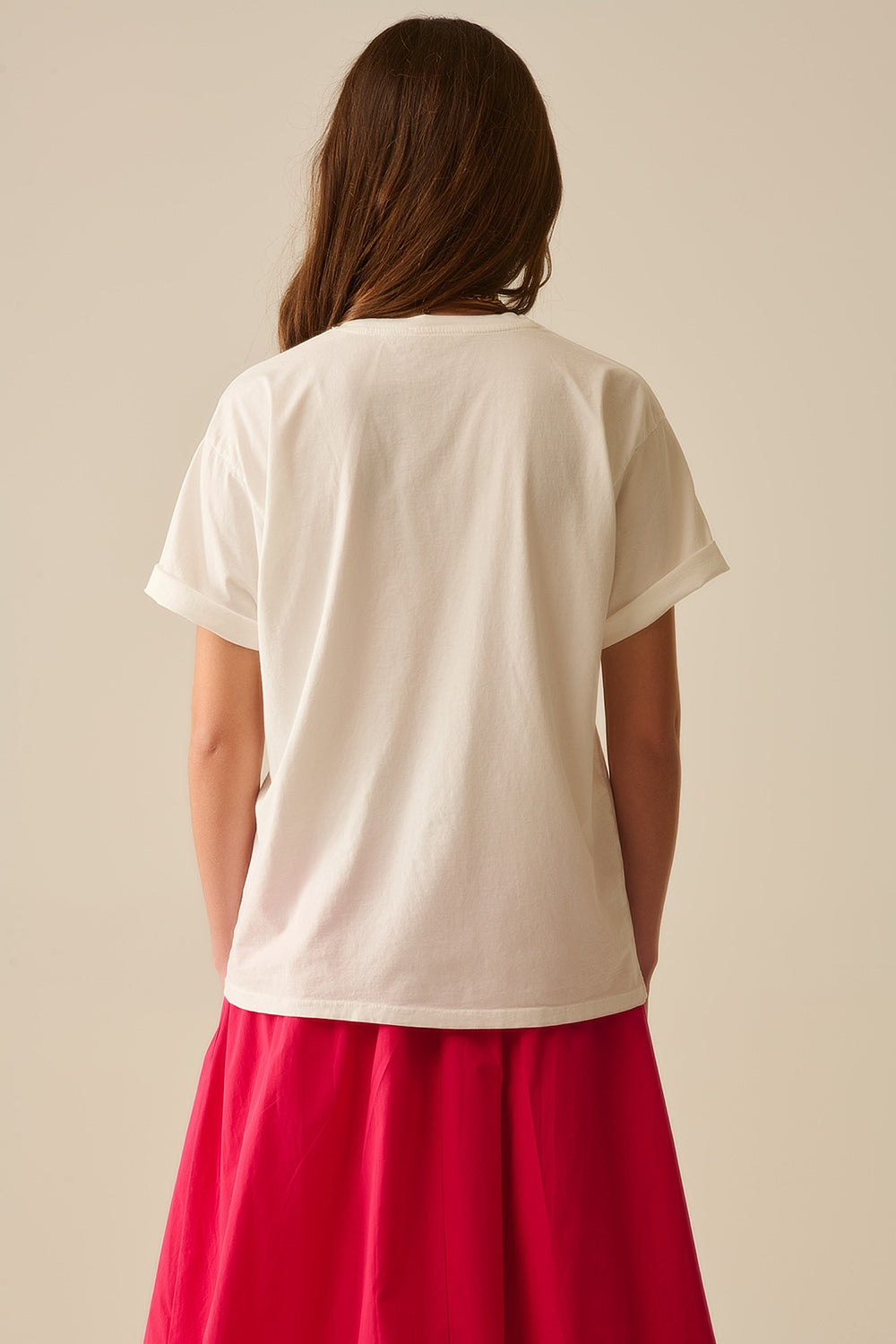 Ce t-shirt blanc décontracté conçu à la fois pour le confort et le style est un ajout tendance à votre collection.