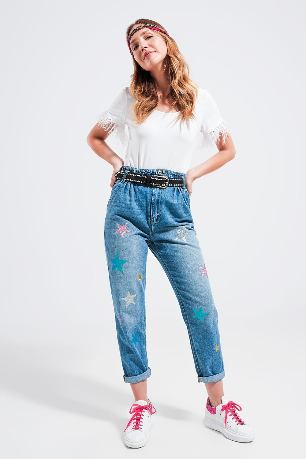 Créer un look avec le" Jean taille haute imprimé étoiles" que vous trouverez dans la boutique