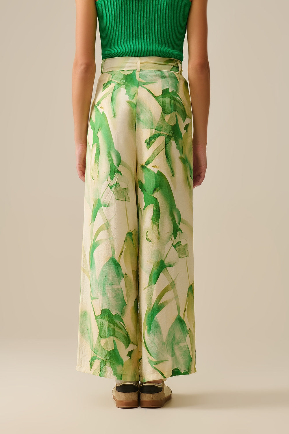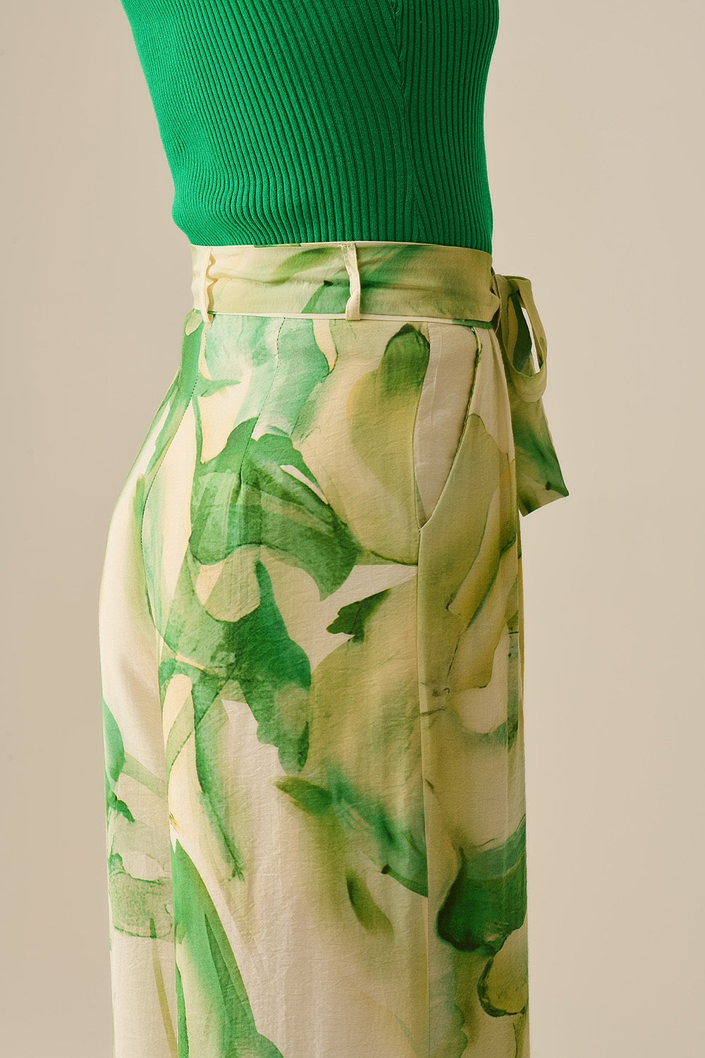Entrez dans l'élégance sans effort avec ce pantalon à jambe large doté d'un imprimé abstrait vibrant.